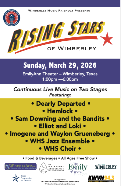 Music Friendly Wimberley is hosting a youth-centered concert on Sunday, March 29th from 1:00–6:00 PM at the EmilyAnn Theatre—and they need your help!